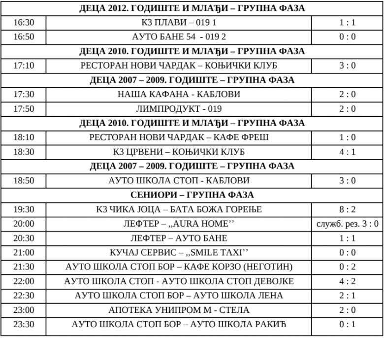 Mnogobrojna publika u naselju Ključ III i večeras može uživati u dobrom fudbalu i egzibicijama dece od 2007. do 2012. godišta i mlađe, kao i senira iz Zaječara i okoline. Broj takmičarskih ekipa se u međuvremenu popeo sa 44 na 46, a na programu još uvek utakmice grupne faze.
