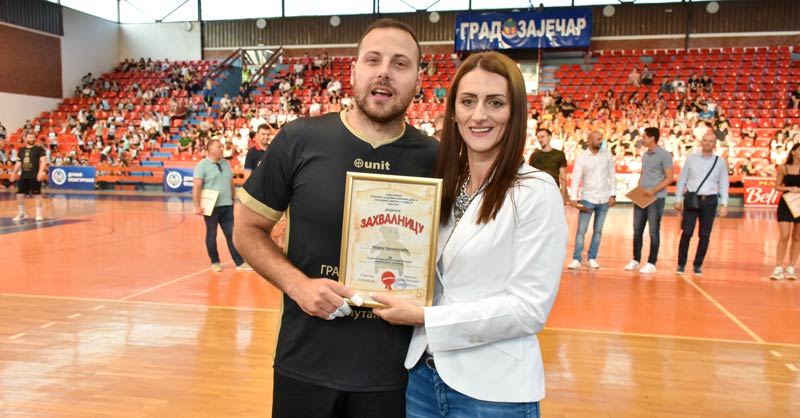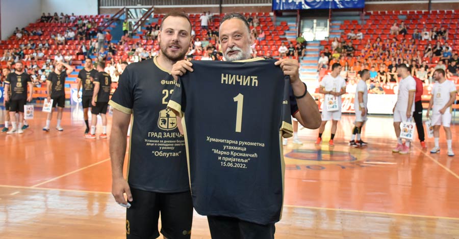Gradonačelnik Zaječara Boško Ničić i Jugoslav Petrović, predsednik i trener RK Zaječar, u ime kluba uručili su zatim Marku Krsmančiću uramljen dres sa obeležjima kluba u kom je počeo i završio bogatu karijeru.