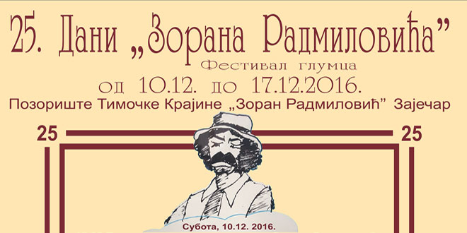 U susret 25. jublarnim Danima Zorana Radmilovića zaječarsko pozorište danas se obratilo medijima sa saopštenjem za javnost u kome se navodi da će uprkos besparici i činjenici da je tek nedavno deblokiran račun, Pozorište Timočke krajine „Zoran Radmilović“ i Fondacija ipak organizovati 25. Dane „Zorana Radmilovića“.