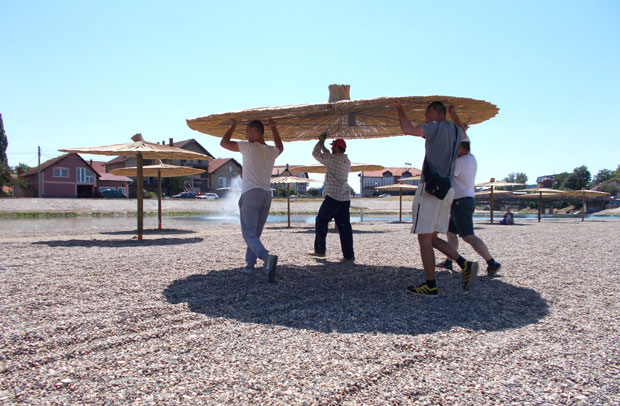 Na Popovoj plaži u Zaječaru jutros je zavšeno čišćenje i postavljanje brane, u toku je postavljanje suncobrana, uređenje pločnika…