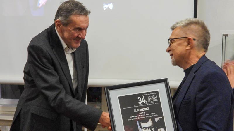 Uz reči zahvalnosti, Vladimir Đuričić, direktor zaječarskog teatra, uručio je danas glumcu Miodragu Mikiju Krstoviću Plaketu za izuzetan doprinos kulturi Srbije.