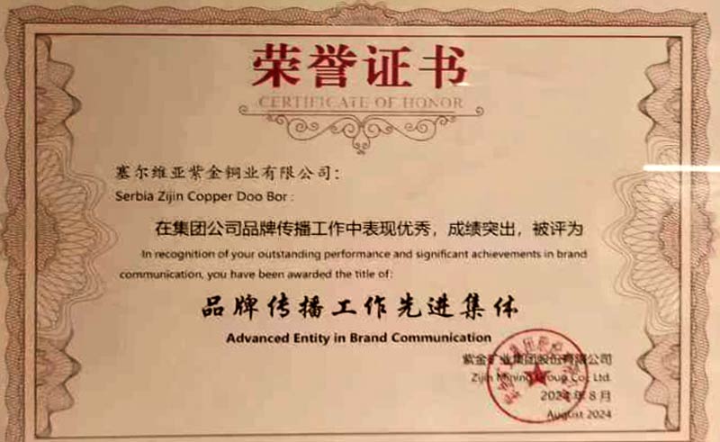 Srbija Zijđin Koper jedna je od četiri prekomorske operacije Ziđin Majning Grupe koje su proglašene izvanrednim u oblasti brendinga i pi-ara. Pored Srbija Ziđin Koper (bivši RTB Bor), ovo prestižno priznanje ponele su još samo Ziđinove podružnice u Kini, Kolumbiji i Tibetu, odnosno Continental Gold Limited Sucursal Colombia, Zijinshan Gold & Copper Mine i Tibet Julong Copper Co., Ltd.