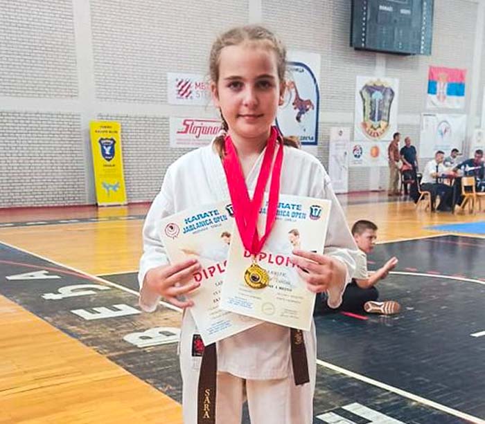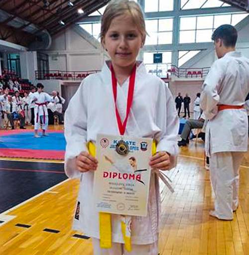 Marko Mutavdžić (2010. godište) plavi pojas, u katama je osvojio treće mesto, a u borbama prvo, dok je Sara Krstić (2012. godište) braon pojas, u katama i borbama osvojila prvo mesto. Njena vršnjakinja Sofija Mihajlović, žuti pojas, u katama je osvojila drugo mesto.