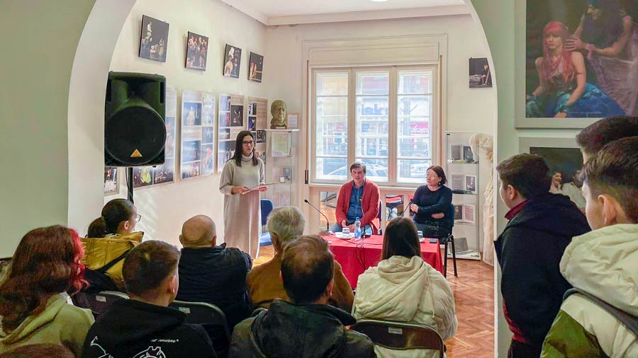 Na tribini o važnosti očuvanja srpskog jezika, govorili su Stevan D. Jovanović, profesor srpskog jezika i književnosti i Lenče Bumbaroska Radosavljević, klasični filolog i profesor latinskog jezika.