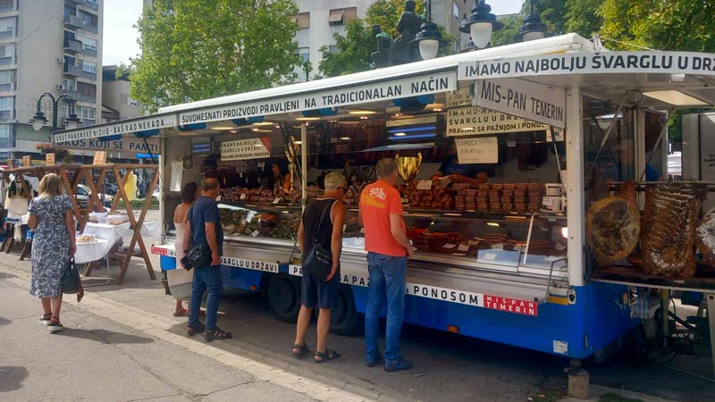 „Dolazimo stalno zato što volimo Zaječar i rado mu se vraćamo. Imamo čitavu lepezu domaćih suhomesnatih proizvoda, koji se rade na seljački način, a rade tri brata i njihov tata. Ne vežu mašnice i celofane, ali zato je sve onako kako se nekad radilo“, rekla je Dušanka Jelić, iz sela Jazak nadomak Iriga, radnica Poljoprivrednog gazdinstva „Iz dedine pušnice“.