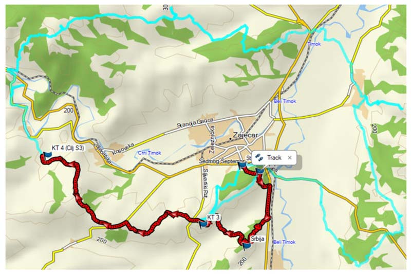 Trasa staze: START- KT1 (Istočna tvrđava) – KT2 (Parajankul) – KT3 (Zapadna tvrđava) – KT4 (Feliks Romulijana) – CILJ