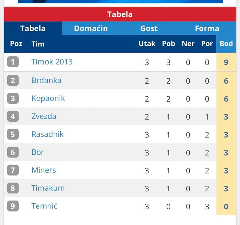 KMF „Timok“ trenutno zauzima prvo mesto na tabeli Regionalne futsal lige – Grupe “Sever”, sa osvojenih devet bodova.