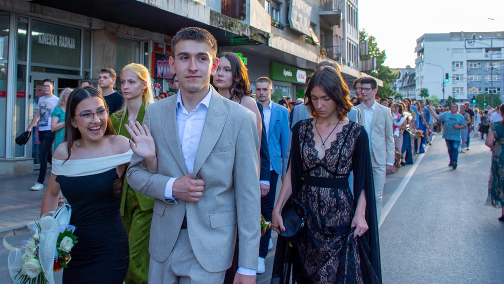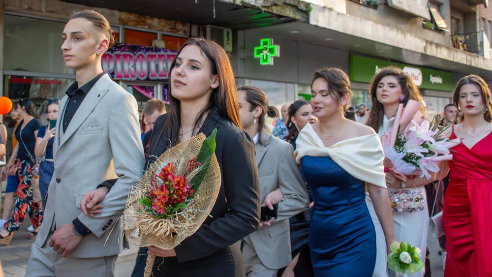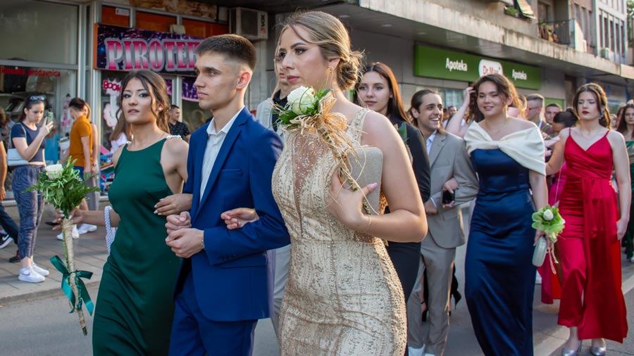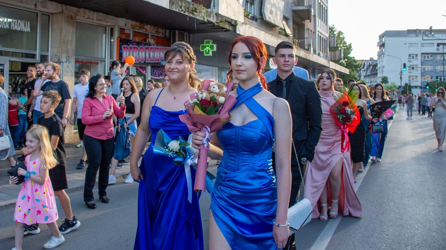 Tradicionalni defile od platoa između škola „Ljuba Nešić“ i „Desanka Maksimović“, Dositejevom, a zatim i Ulicom Nikole Pašića, privukao je pažnju velikog broja građana, prijatelja, drugova i porodica maturanata.