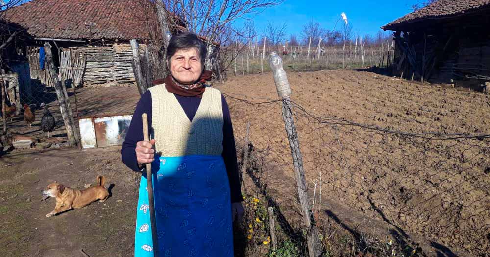 „Ja volim da radim i da imam, ali snaga me izdaje. Pre sam imala papriku, krompir, posadim od svega po malo, pa ne kupujem. Stoku smo imali mnogo više. Sada imam plovke, kokoške, eto čisto da imam neko jaje, da ne kupujem sve. Od male penzije, 16.000 dinara, odvojim pa kupim od svega po malo, ne oskudevam mnogo, ali je teško nabaviti hranu. Ja ne mogu često da idem u grad da kupim namirnice, a ovde nemamo prodavnicu, to je velika muka. Kad neko ide u grad zamolim ga da mi donese nešto, i obično kupim brašno i šećer u većim količinama“, objašnjava Mirjana.
