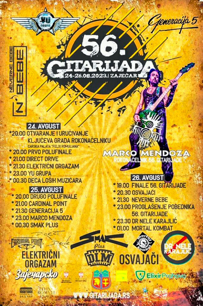Sinoć je predavanjem ključeva grada poznatom basisti Marku Mendozi zvanično otpočela 56.Gitarijada u Zaječaru.
